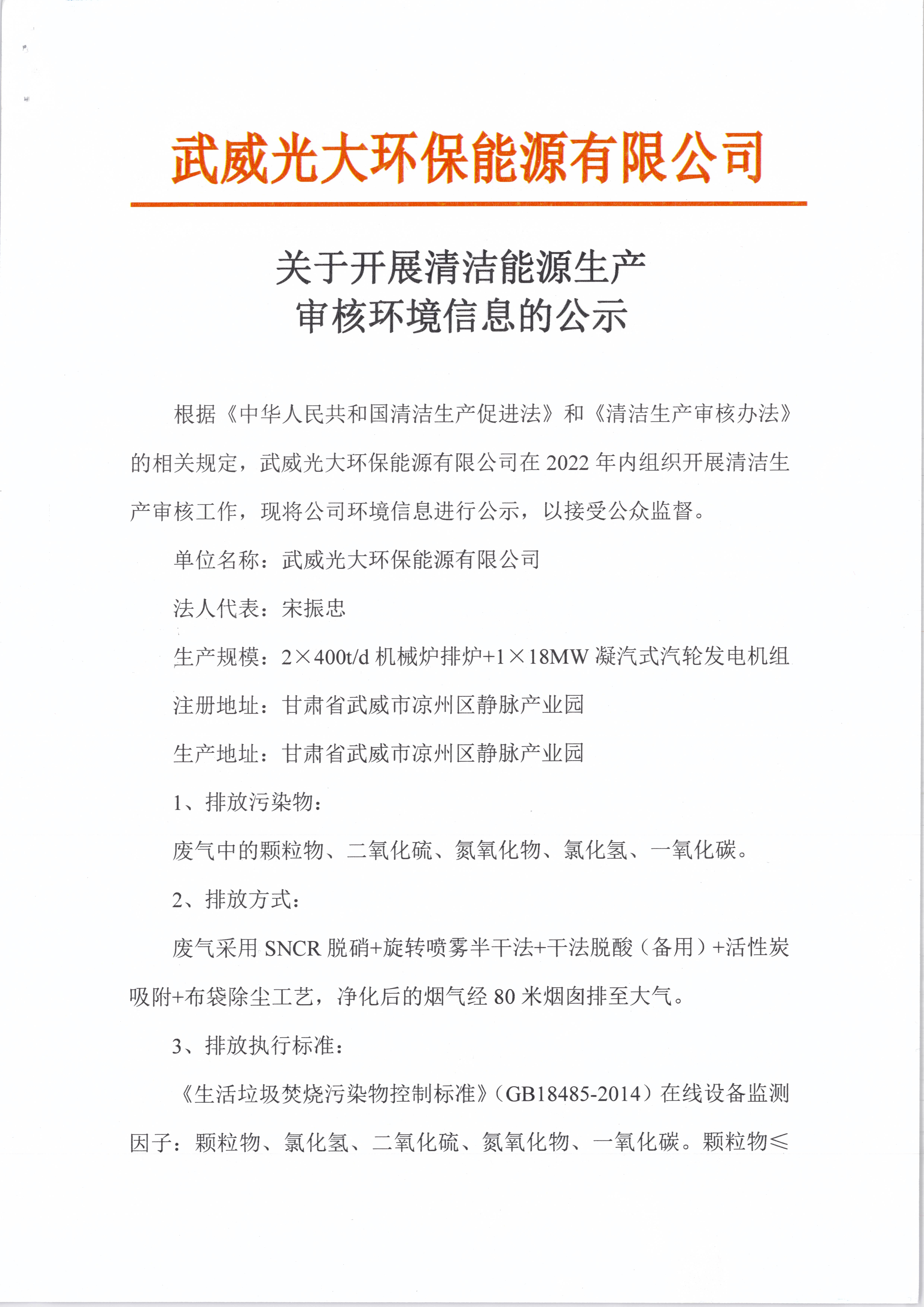 武威光大環(huán)保能源有限公司開(kāi)展清潔生產(chǎn)審核公示
