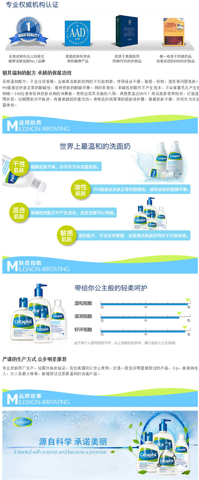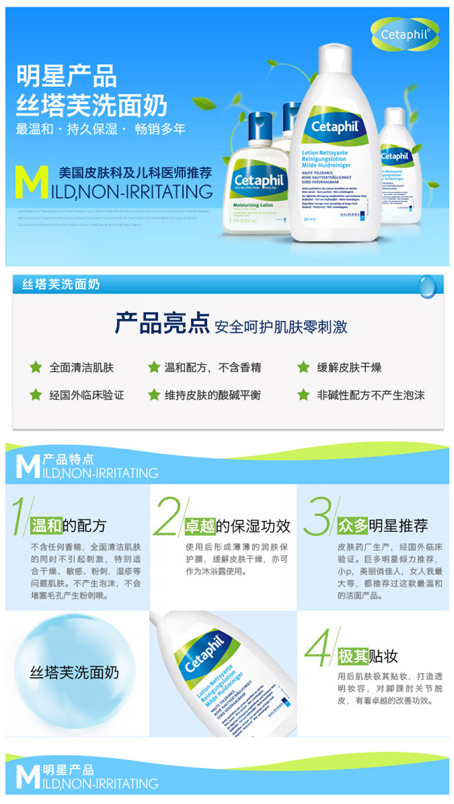 配方極溫和,全面清潔肌膚的同時不引起刺激。特別適合干燥、敏感、粉刺、濕疹等問題肌膚。